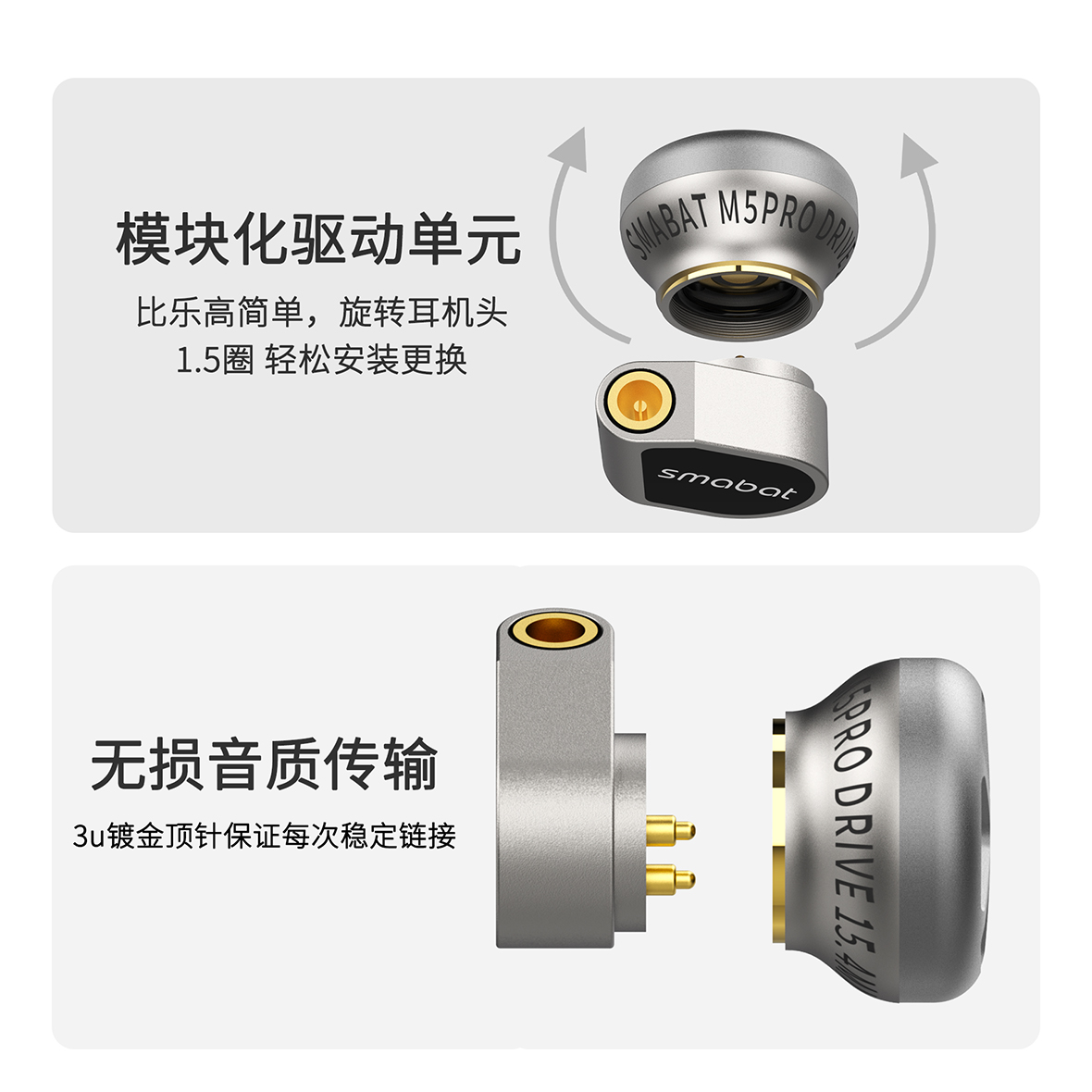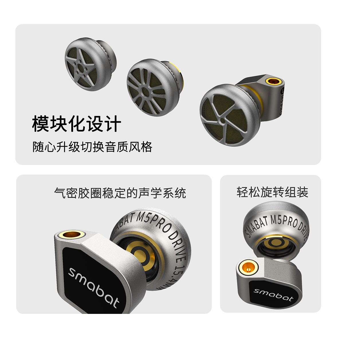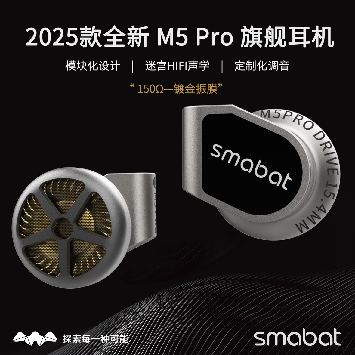 【25款 小蝙蝠 Smabat M5 Pro】全球首款旗舰级模块化声学平台耳机在声学科技不断进化的时代,小蝙蝠科技重磅推出革命性旗舰 —— Smabat M5 Pro。 核心亮点全球首创 全模块化声学系统 航空级金属机身 旗舰动圈单元配置 适合人群